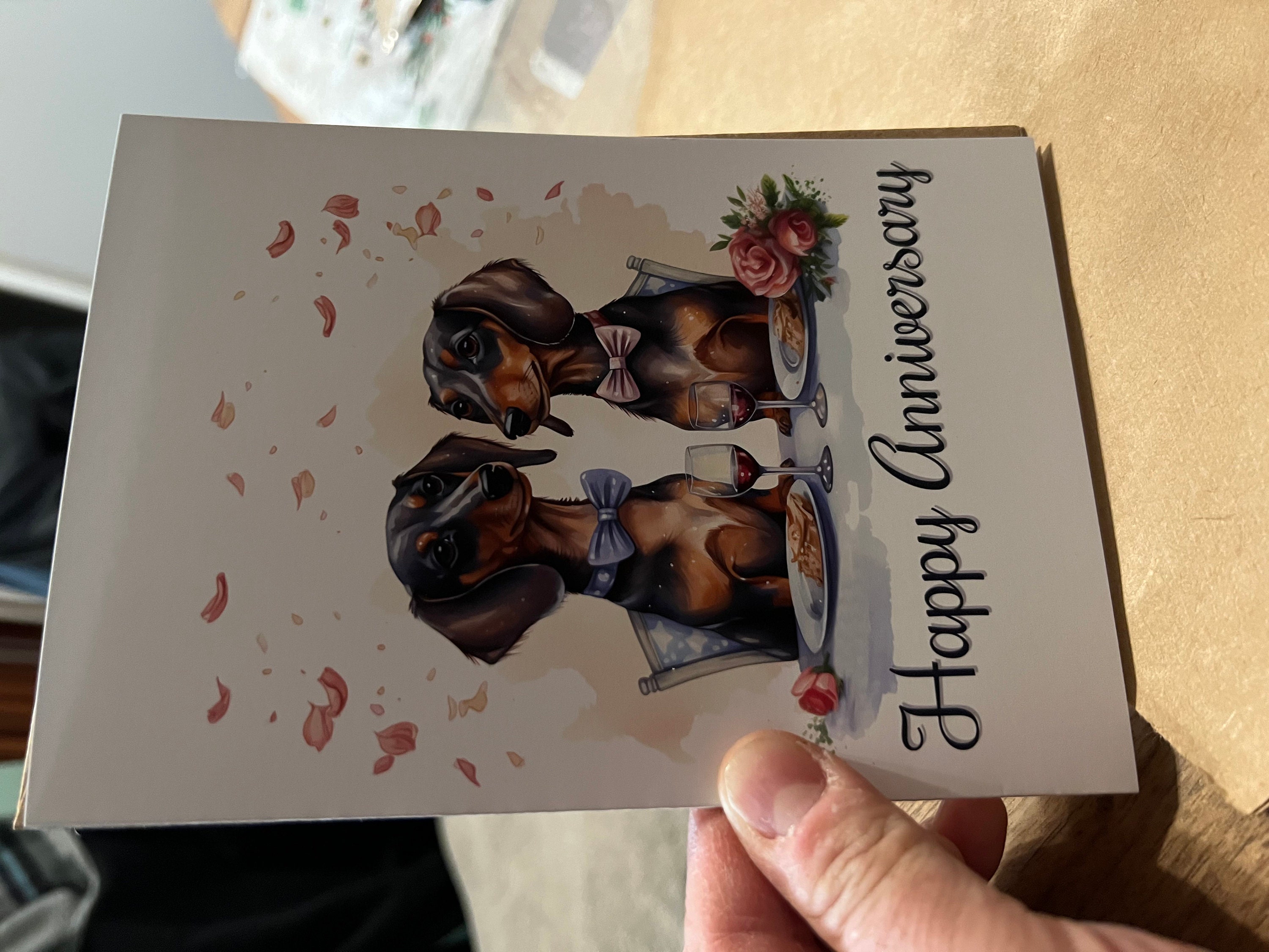 Introducing our delightful Weiner Dog Anniversary Card, a charming and versatile way to express your heartfelt sentiments for a beloved anniversary! Handcrafted with love and care, this card features a stunning illustration of adorable a French Bulldog couple sitting at a dinner table celebrating their anniversary!