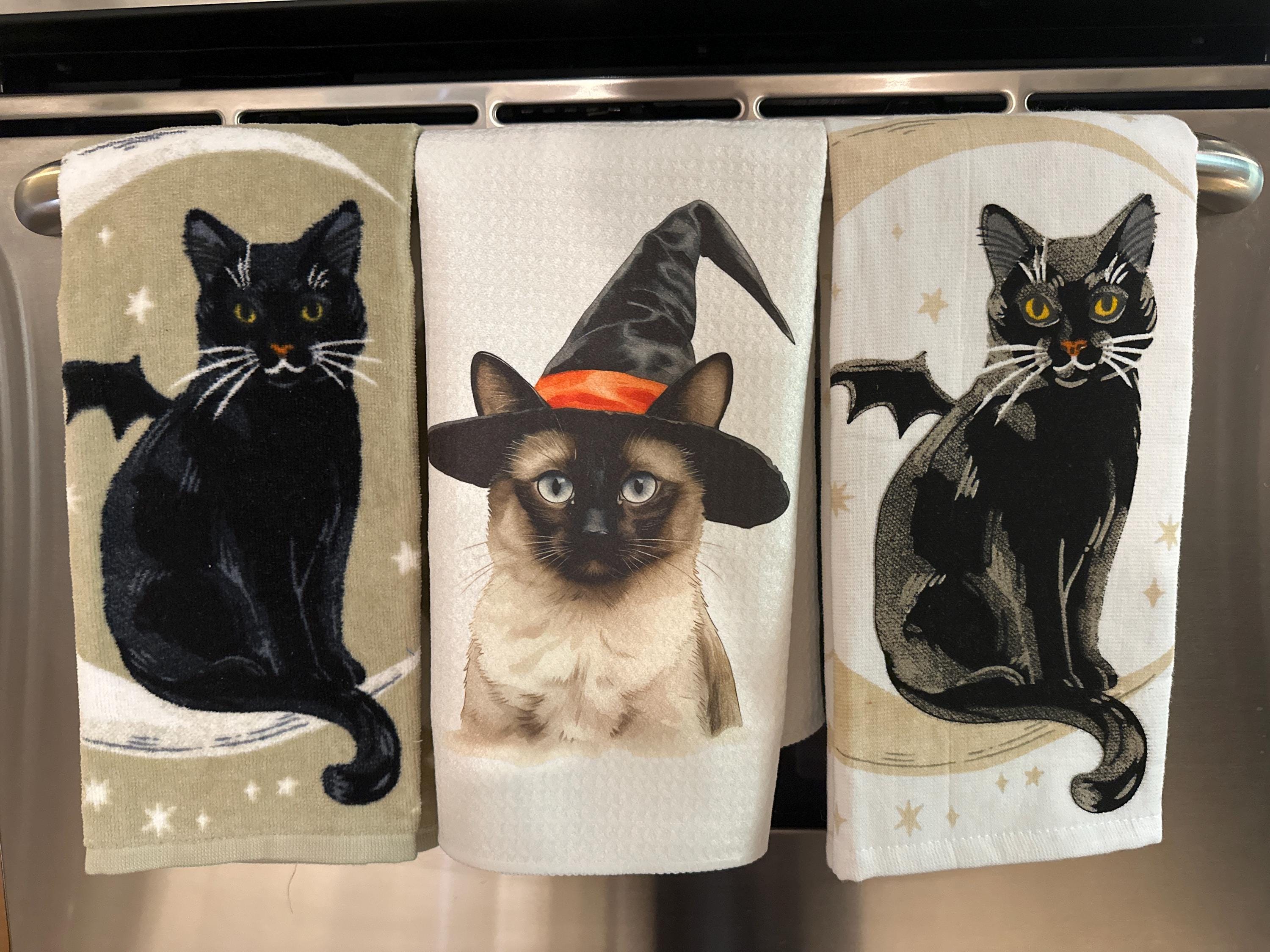 Halloween Siamese Kitchen Towel | Kitchen Tea Towel | Siamese Cat Towel | Halloween Gift | Cat Halloween Gift | Coworker Gift